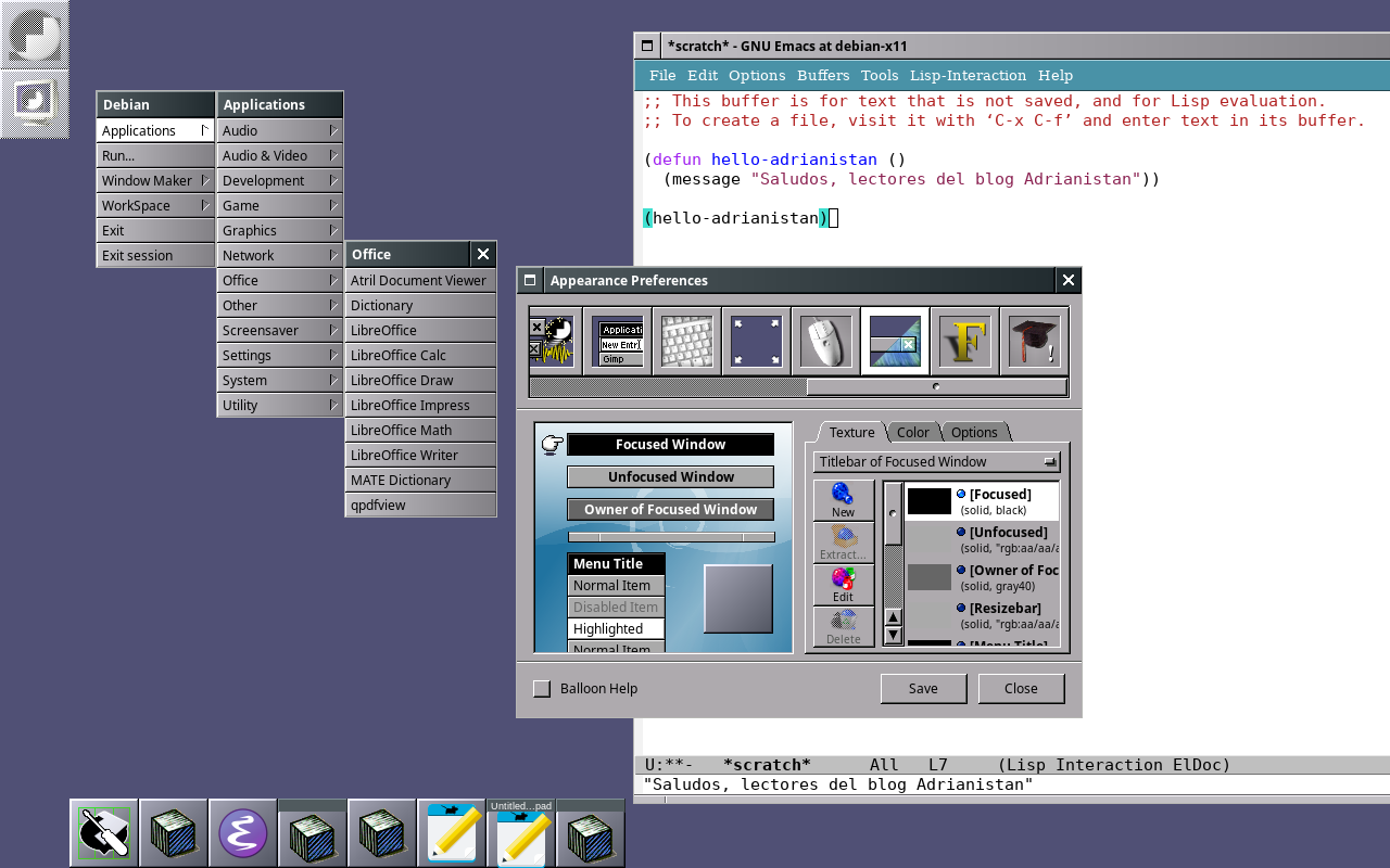 Al tratarse de un Window Manager es muy básico por defecto, pero podemos añadirle las aplicaciones de GNUSTEP para conseguir un escritorio bastante funcional. Esas aplicaciones en WindowMaker se ven nativas.
